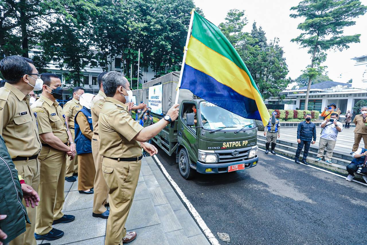 Wali Kota Bandung, Yana Mulyana melepas secara langsung rombongan yang akan pergi ke Cianjur di Balai Kota Bandung