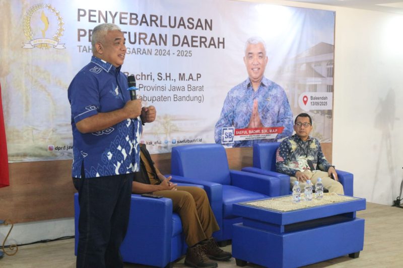 Infobandungnews.com – Anggota DPRD Provinsi Jawa Barat dari Fraksi Partai Demokrat H. Saeful Bachri. S.H., M.A.P melaksanakan Sosialisasi Peraturan Daerah Provinsi Jawa Barat No. 6 Tahun 2019 tentang Kewirausahaan Daerah bersama para pelaku UMKM di wilayah Kecamatan Baleendah Kabupaten Bandung. Sabtu (13/09/2025).